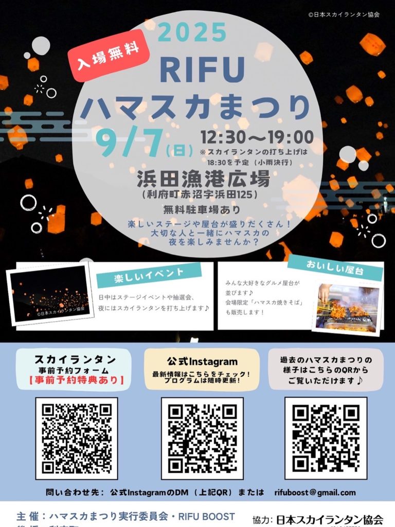 今年も「ハマスカまつり」が9/7に利府町浜田で開催されます。