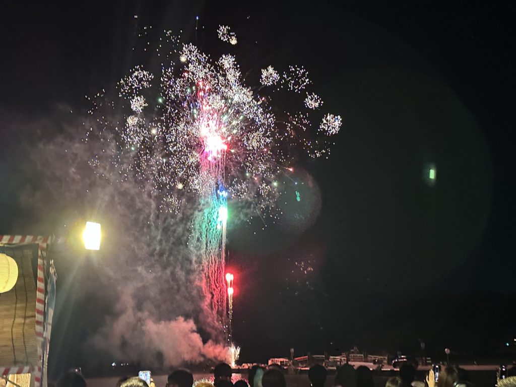本日は「松島流灯会 海の盆」。町民だけではなく、観光客や外国の方々と一緒に盆踊り。初めてのオロナミンC音頭を楽しく踊りました。供養花火と灯籠流しを間近で見つつ、ご先祖様に感謝。