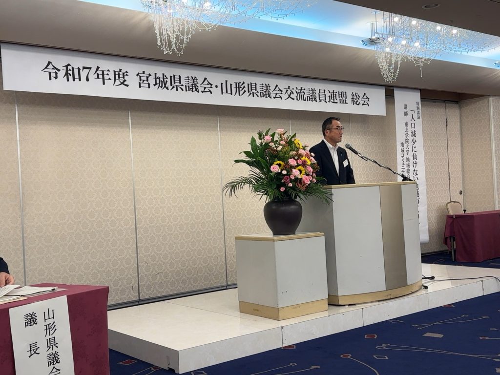 宮城県議会・山形県議会交流議員連盟の総会が行われ、両議会から約90名が出席しました。