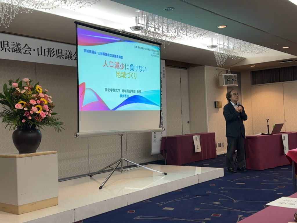 東北学院大学地域総合学部の柳井教授による「人口減少に負けない地域づくり」と題した特別講演も行われ、複数の事例を紹介しつつ、バックキャスティング(未来像を描き、目標を設定しつつ、そこから逆算して計画を立てる手法)による施策を考えるべきとの事で、空き家活用などを含め、参考になる話でした。