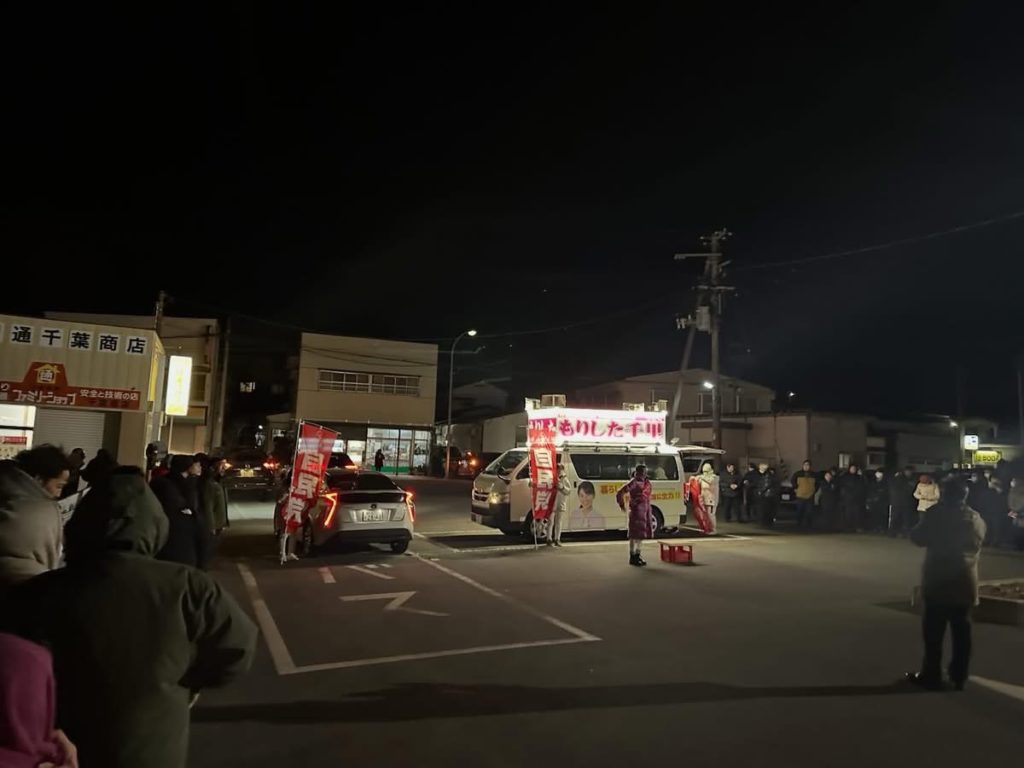 19時からの品井沼駅前での街頭演説を行いましたが、寒い中にも関わらず、想定の倍以上の方々にお集まりいただきました。改めて感謝申し上げます。