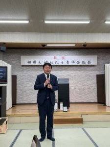 さて、夜は初原天神社氏子青年会の総会。
