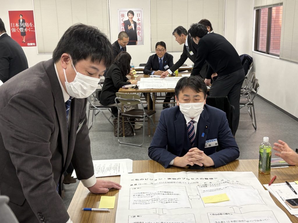 報告会に向け、それぞれが考えてきた施策やビジョンを塾生同士で意見を出し合うワークショップです。